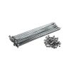 The spoke nipple is a headed cylinder with threading on the inside through part of its length (there is an unthreaded lead-in nearest the “flats”). Traditionally, the nipples fit in holes in the rim, so that the head of the nipple is on the outermost part of the rim, while the other end of the nipple points inwards towards the hub.